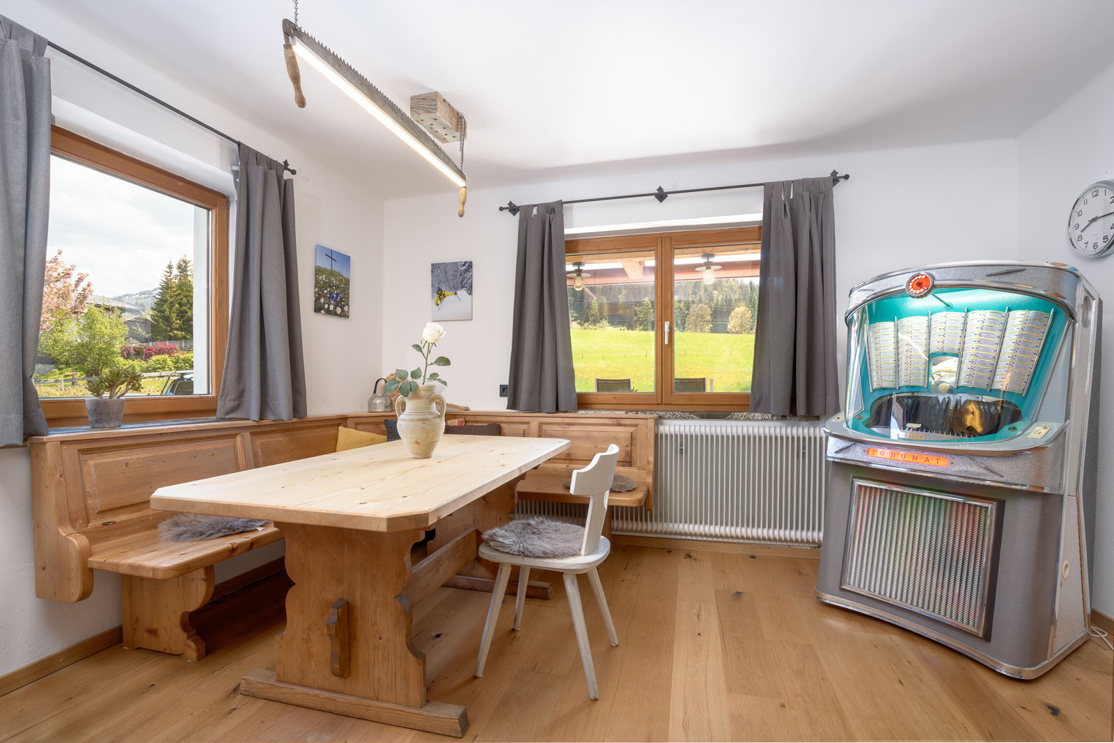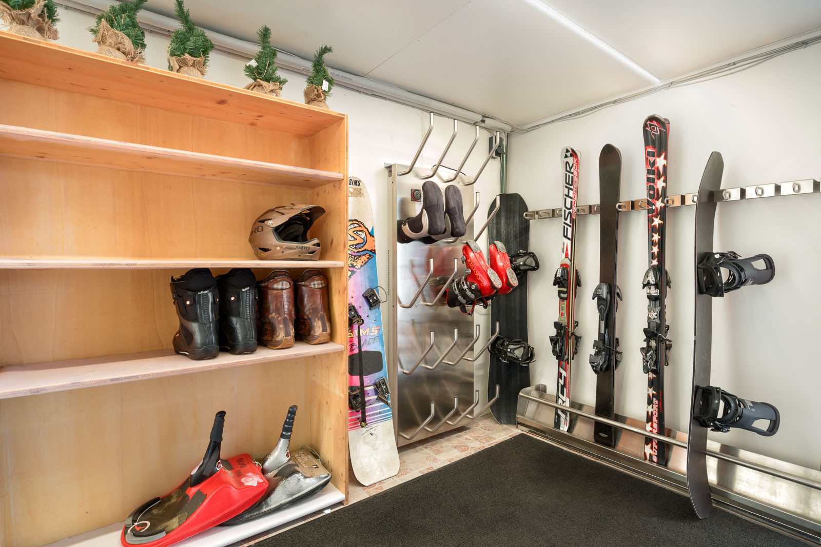 Ideal für Gruppenreisen. Große Gemeinschaftsräume. Für den Skiurlauber haben wir im Untergeschoss Skischuhtrockner und Skiregal gebaut. Aufbewahrung für bis zu 12 Sets. Dieser Raum eignet sich im Sommer pefekt um Eure teuren Fahrräder zu versperren.